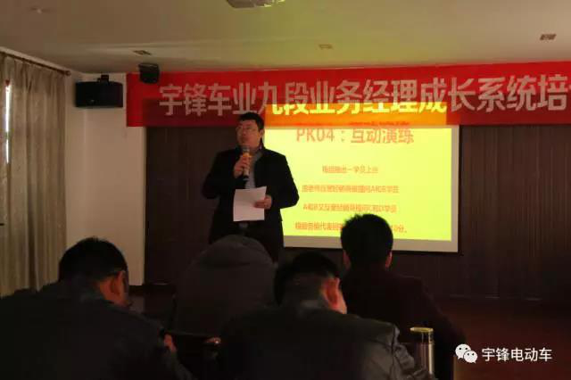 宇鋒車(chē)業(yè)總經理薛斌先生(shēng)參會(huì)并提出指導意見(jiàn),負責本次專業(yè)培訓的是行業(yè)策劃人(rén)和培訓師、企劃部部長(cháng)張勇老(lǎo)師,培訓主題是《九段業(yè)務經理成長(cháng)系統培訓》,整個(gè)內(nèi)部培訓講課時間為一(yī)整天,實際封閉式培訓講課四個(gè)小時。