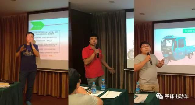 針對宇鋒一(yī)百多個(gè)産品型号,張勇老(lǎo)師抽出其中(zhōng)典型的十個(gè)品種,從矢量電機、高性能控制(zhì)器和加力後橋,一(yī)體(tǐ)化(huà)(huà)車(chē)廂和高強度車(chē)架,詳細分解。好的産品力,就(jiù)是一(yī)種銷售力,用最具巧妙的語言,達到讓消費者聽到最容易接受的音符。 在産品賣點的講解和演示中(zhōng),張勇老(lǎo)師請(qǐng)出多組不(bù)同人(rén)員,對産品進行現場解析,通過人(rén)、車(chē)和客三者的互動,針對不(bù)同的人(rén),根據需求,講好各自(zì)的産品賣點,并對車(chē)的性能進行講解演示,經銷商們都(dōu)精通技術,但如何把産品賣點表述出來和演示出來,就(jiù)要改變思路,從顧客的需求出發,不(bù)但要講好而且要講對自(zì)己的産品。