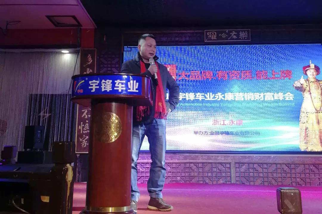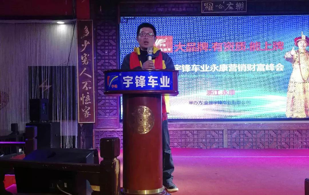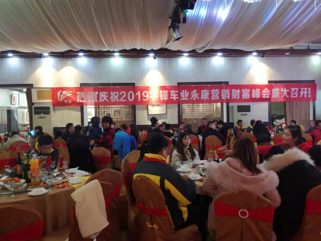 2019年1月21日,金(jīn)翌宇鋒車(chē)業(yè)有限公司“2019宇鋒車(chē)業(yè)永康營銷财富峰會(huì)”在浙江省永康市(shì)哈啰農莊大酒店隆重舉行,永康市(shì)及浙中(zhōng)周邊地(dì)(dì)區170多名宇鋒新老(lǎo)經銷商參加會(huì)議。