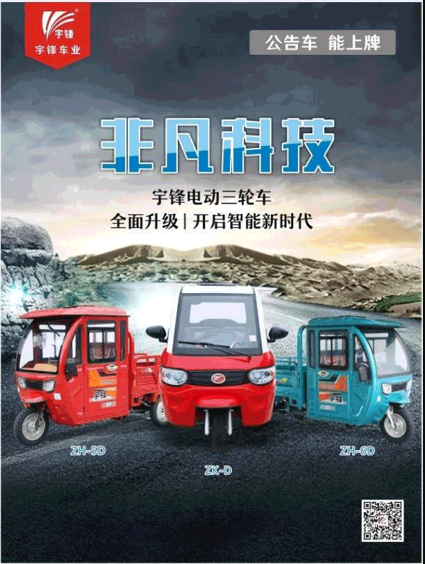 宇鋒電動車(chē)以三輪車(chē)為主體(tǐ),兩輪車(chē)和新能源車(chē)同步發展,六大産品系列八十多個(gè)産品型号,滿足全國(guó)各地(dì)(dì)不(bù)同車(chē)型的消費需求。