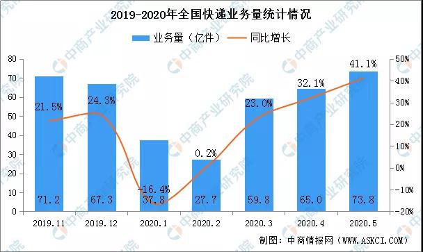 2020年以來,受疫情影響,不(bù)少(shǎo)行業(yè)放緩,而快(kuài)遞行業(yè)保持較快(kuài)增長(cháng)。數據顯示,1-5月份,全國(guó)快(kuài)遞業(yè)務量累計(jì)完成264.1億件(jiàn),同比增長(cháng)18.4%;業(yè)務收入累計(jì)完成3026.8億元,同比增長(cháng)9.9%。