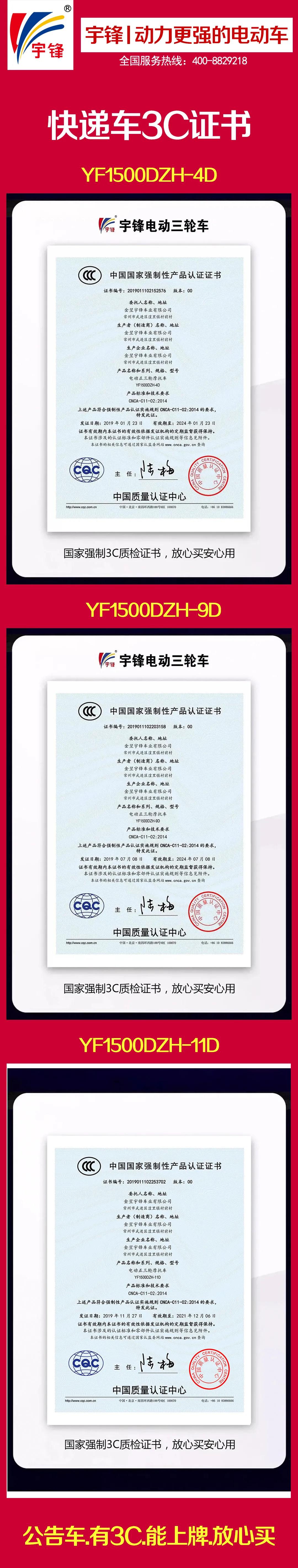 三款快(kuài)遞車(chē)型都(dōu)獲得(de)了3C證書,有大合格證,可上牌,放心買。