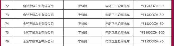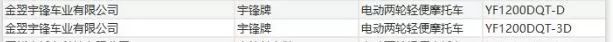 特别聲明(míng):這些(xiē)目錄公告車(chē)型都(dōu)是金(jīn)翌宇鋒車(chē)業(yè)有限公司的宇鋒牌電動車(chē),完全不(bù)是挂靠!