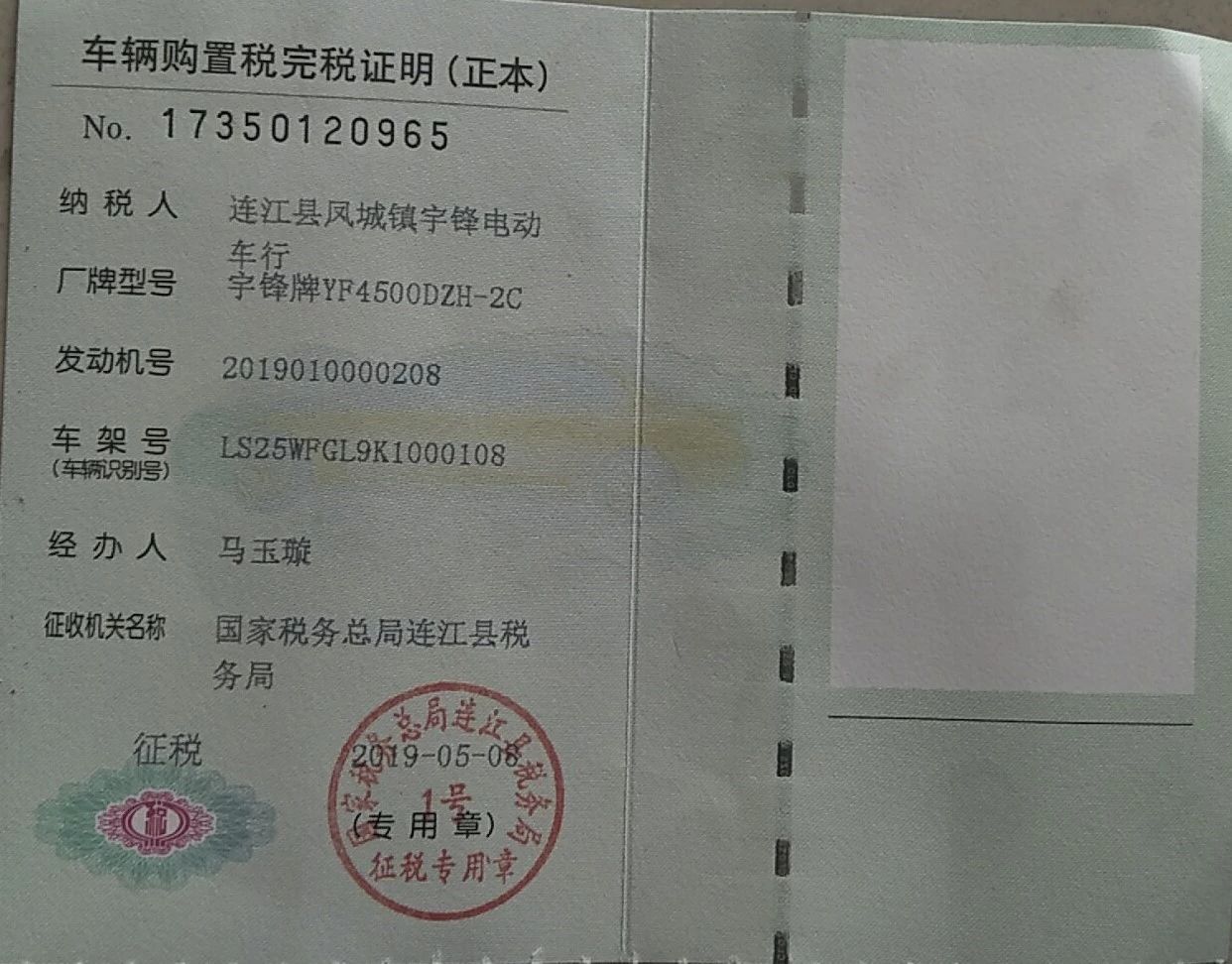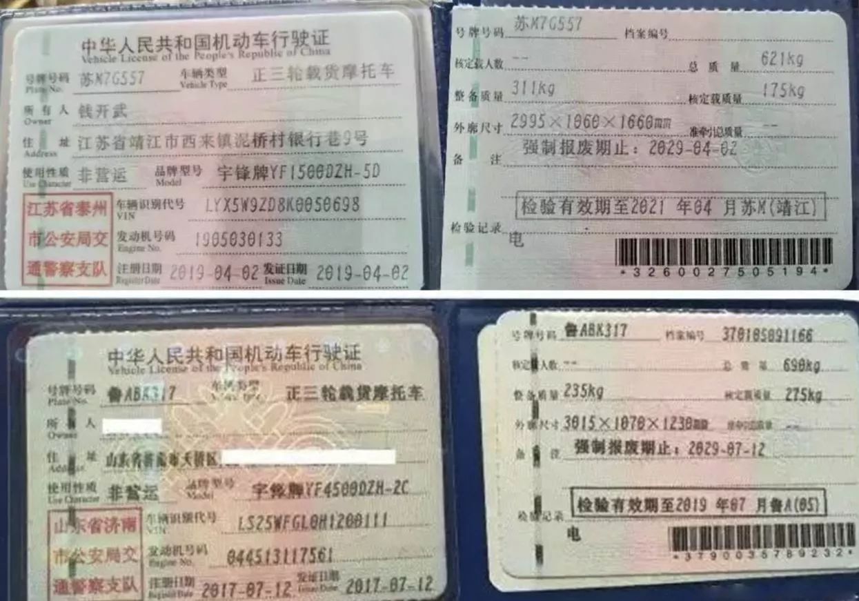 下(xià)面展示幾款宇鋒可上牌三輪車(chē)的上牌圖片: