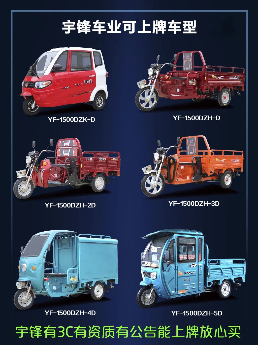 五款三輪上牌車(chē)型:YF1500DZH-6D、YF1500DZH-7