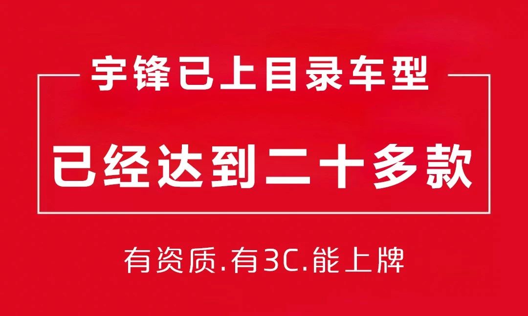 通過近期的幾次目錄公告,可以看(kàn)出,宇鋒在近期又有14款車(chē)型上牌,加上去年已經獲得(de)上牌資格的多款車(chē)型,總上牌數量已經達到二十多款。