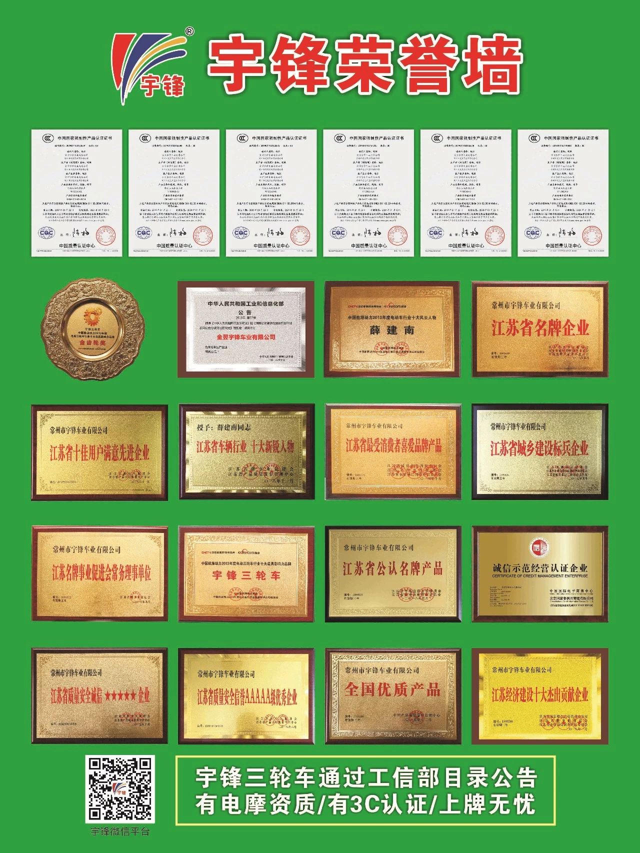 再次,宇鋒三輪車(chē)有資質、能上牌,經銷商方心賣,消費者放心買。
