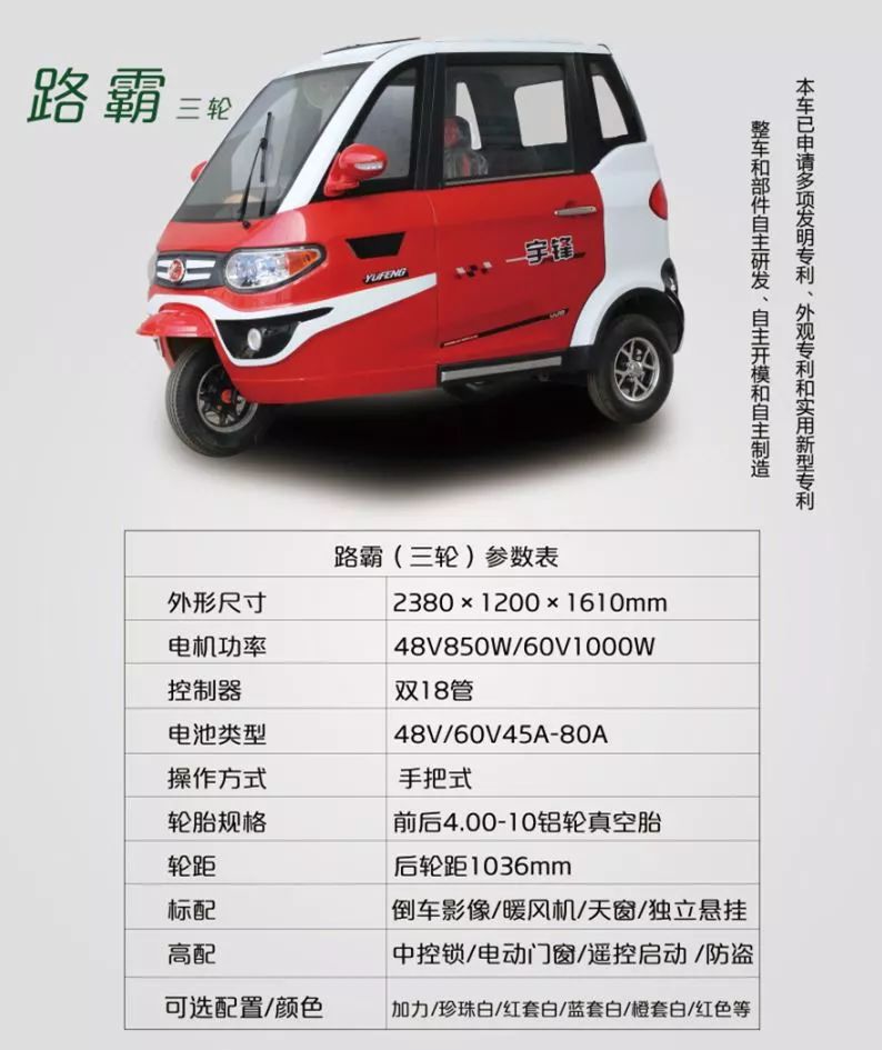 宇鋒新能源----鴻悅,多種顔色搭配,轎車(chē)級烤漆,渾然大氣,澎湃動力,舍我其誰?